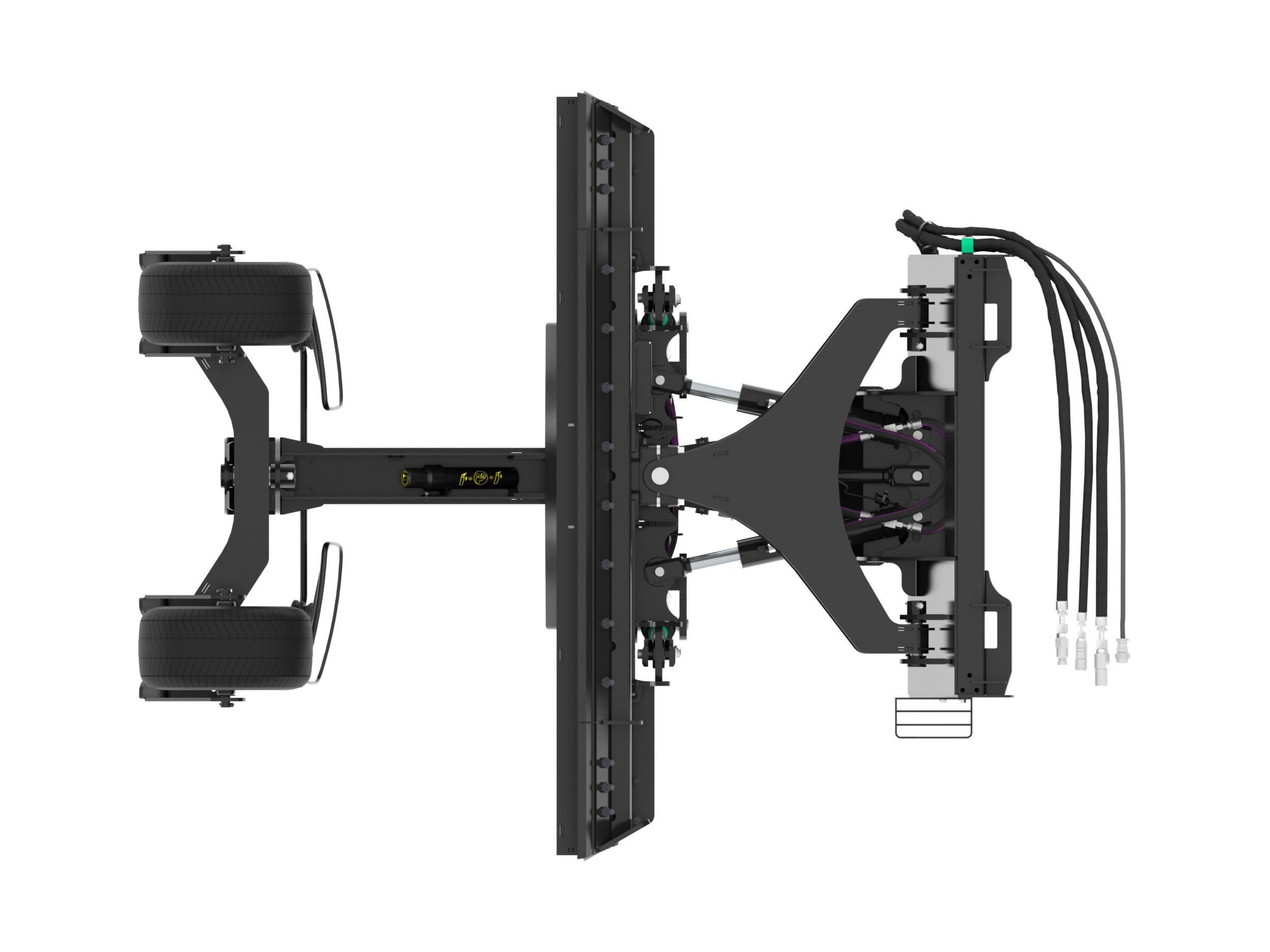 Zwei auf einer unabhängigen Achse und Rollen montierte Vorderräder stabilisieren den Schild in beiden Fahrtrichtungen. Die Räder sind luftbereift und gleichen den Schild bei automatischer und manueller Steuerung aus.