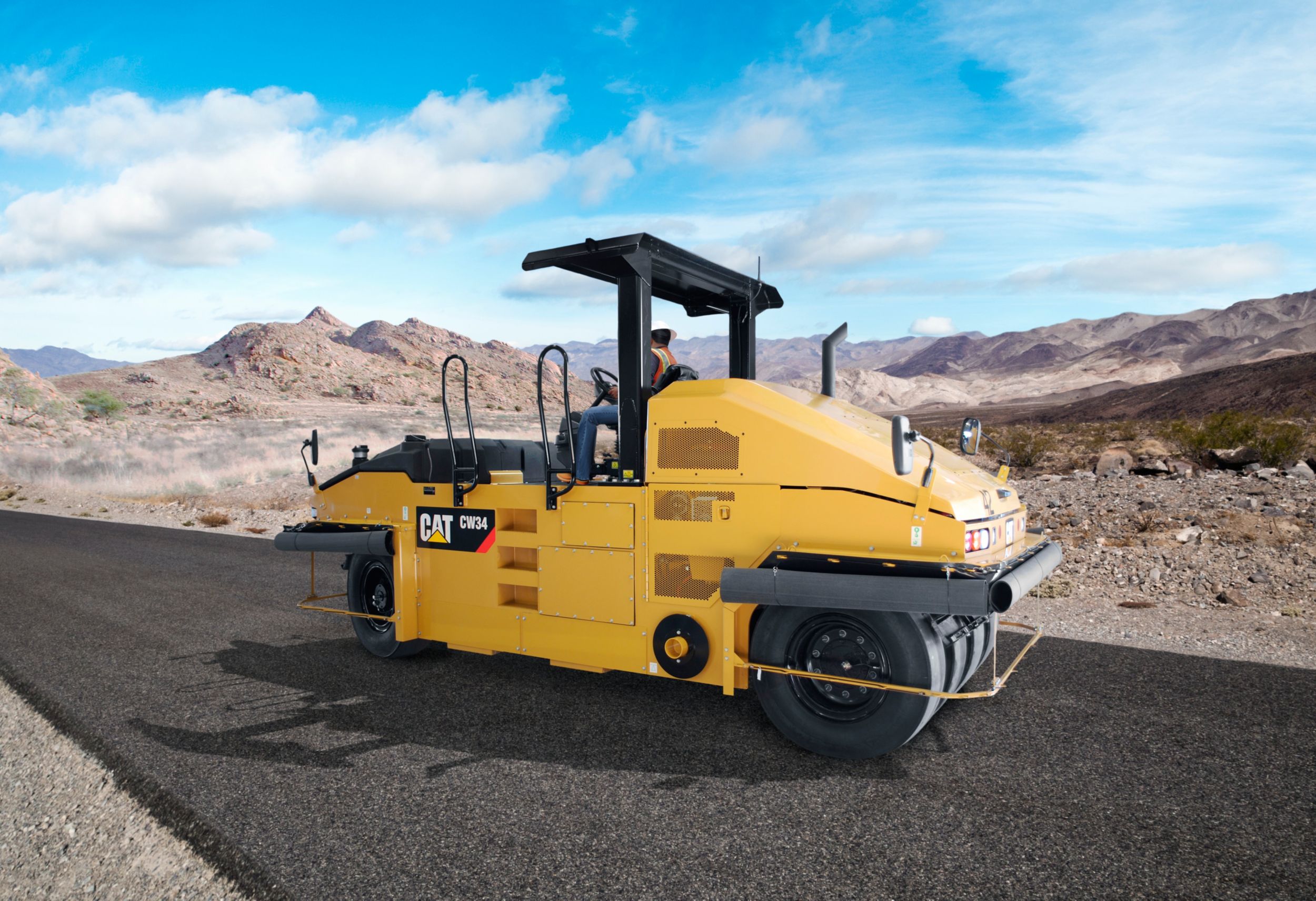 Los neumáticos de goma 13/80 R20 pueden equiparse con el sistema opcional de aire en marcha que permite al operador ajustar rápidamente la presión de los neumáticos para aumentar o disminuir la carga estática y conseguir una calidad óptima de la superficie.