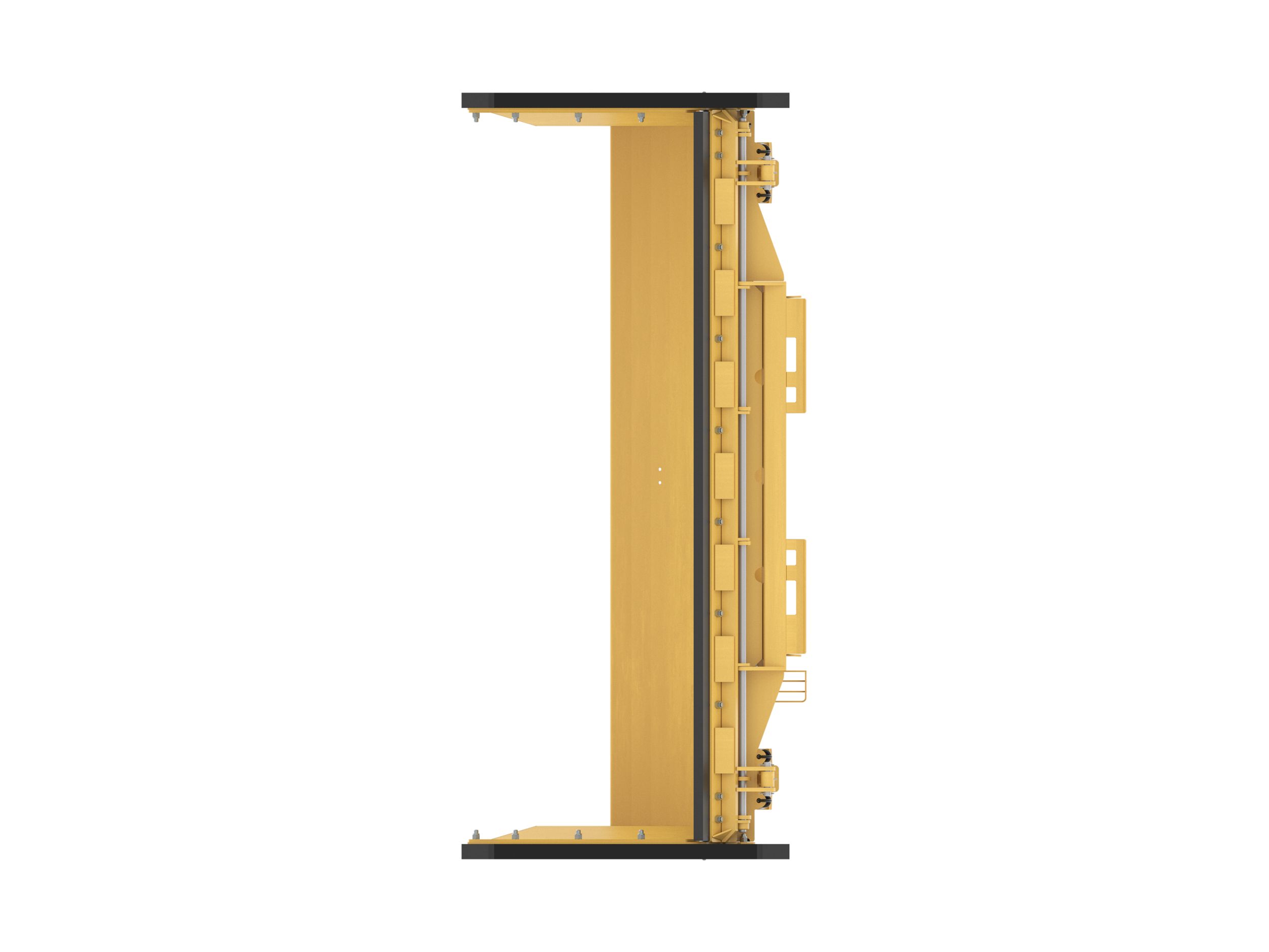 Outre le grand tube raidisseur en travers du bouclier, le support aux flancs profilés prolonge la durée de vie et accroît les performances dans la plupart des applications de déneigement exigeantes. Le support en caissons extérieur est conçu pour éviter que la neige n'adhère au bouclier et pour renforcer les sections de poussée extérieures.