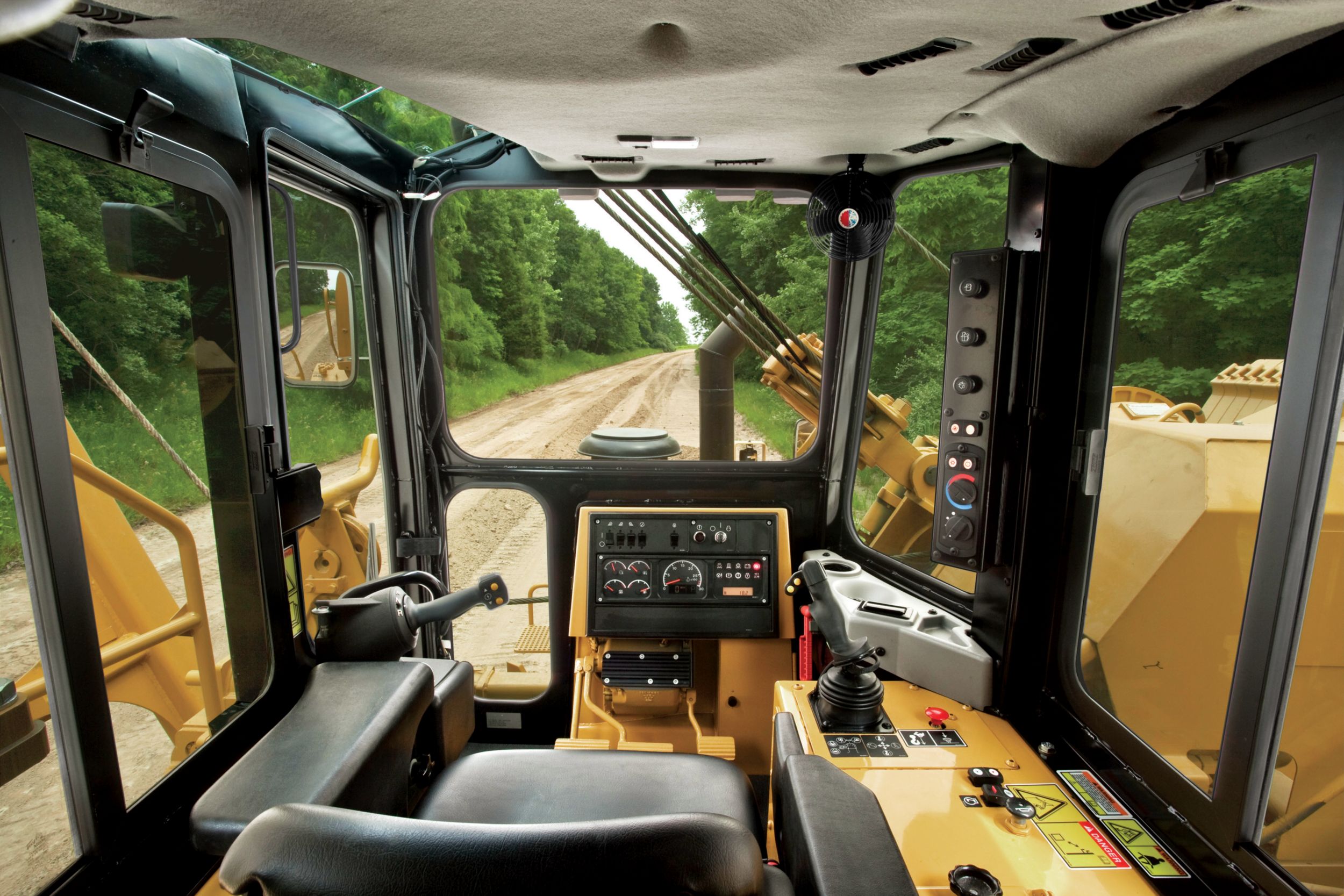 Des commandes ergonomiques à moindre effort permettent au conducteur d'accéder à toutes les commandes et fonctions des équipements du tracteur pose-canalisations d'une seule main. Les caractéristiques de la cabine communes à tous les modèles de tracteurs pose-canalisations facilitent l'utilisation des machines.