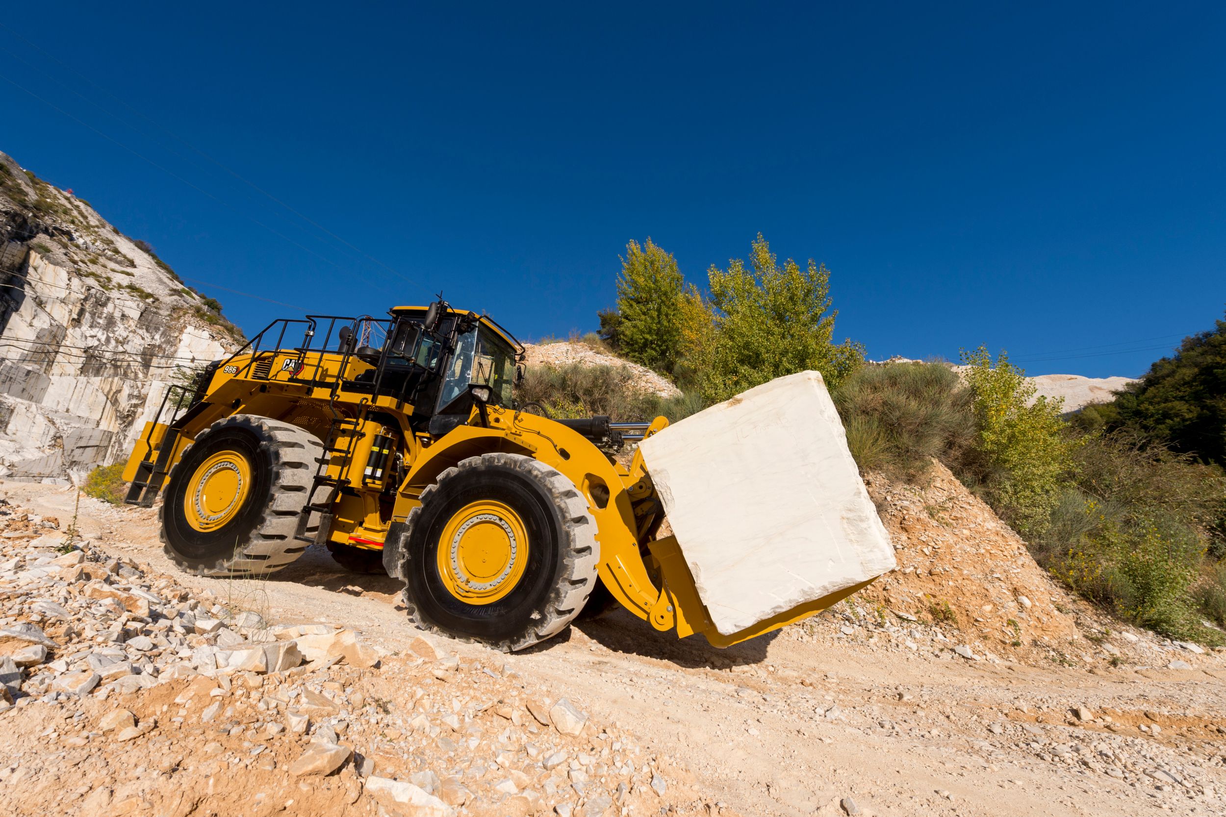 Les grosses chargeuses sur pneus Cat® sont conçues pour offrir une durée de vie maximale et garantir une disponibilité optimale, sur plusieurs cycles de vie. Grâce à leurs performances optimisées et leur entretien simplifié, nos machines vous permettent de déplacer plus de matériaux de manière plus sûre et plus rentable, et ce à un coût par tonne inférieur. La 986 améliore encore la durée de vie, les performances, la sécurité, le confort du conducteur, la facilité d'entretien et les caractéristiques relatives au développement durable